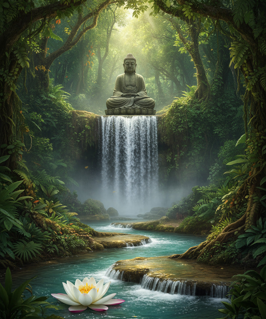 Diamond painting Boeddha waterval | Exclusief bij Painting Diamonds©