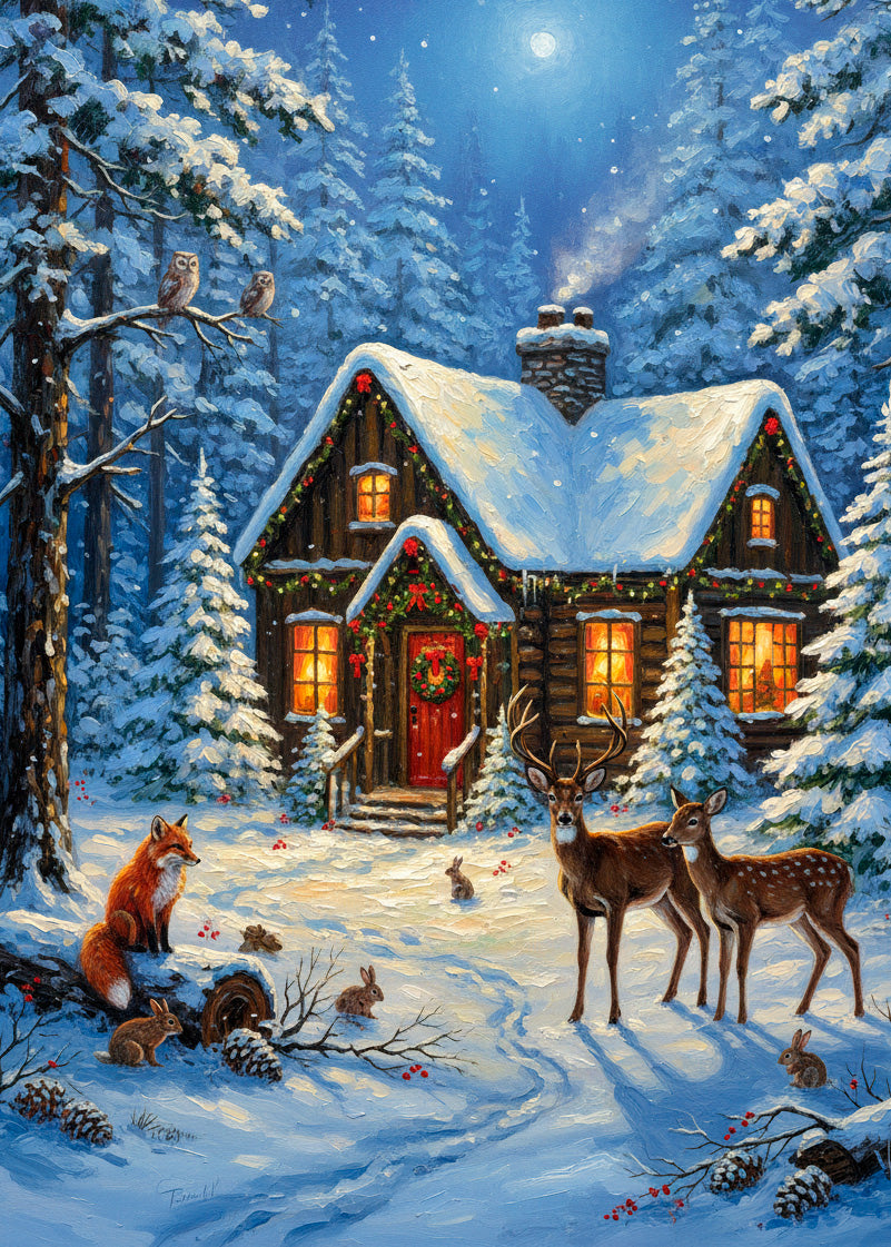 Diamond painting kerst huisje landschap | Exclusief bij Painting Diamonds