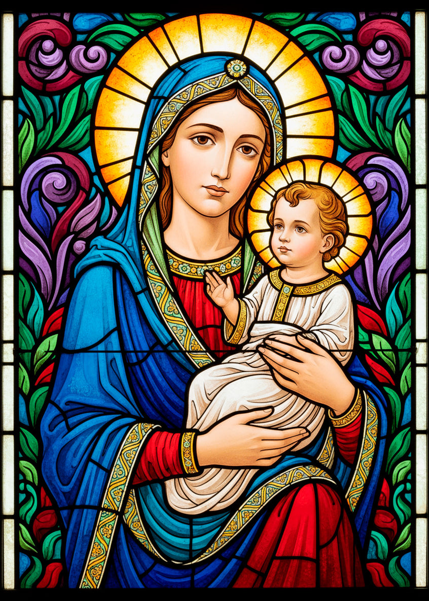 Diamond painting Maria en kind glas in lood | Exclusief bij Painting Diamonds©