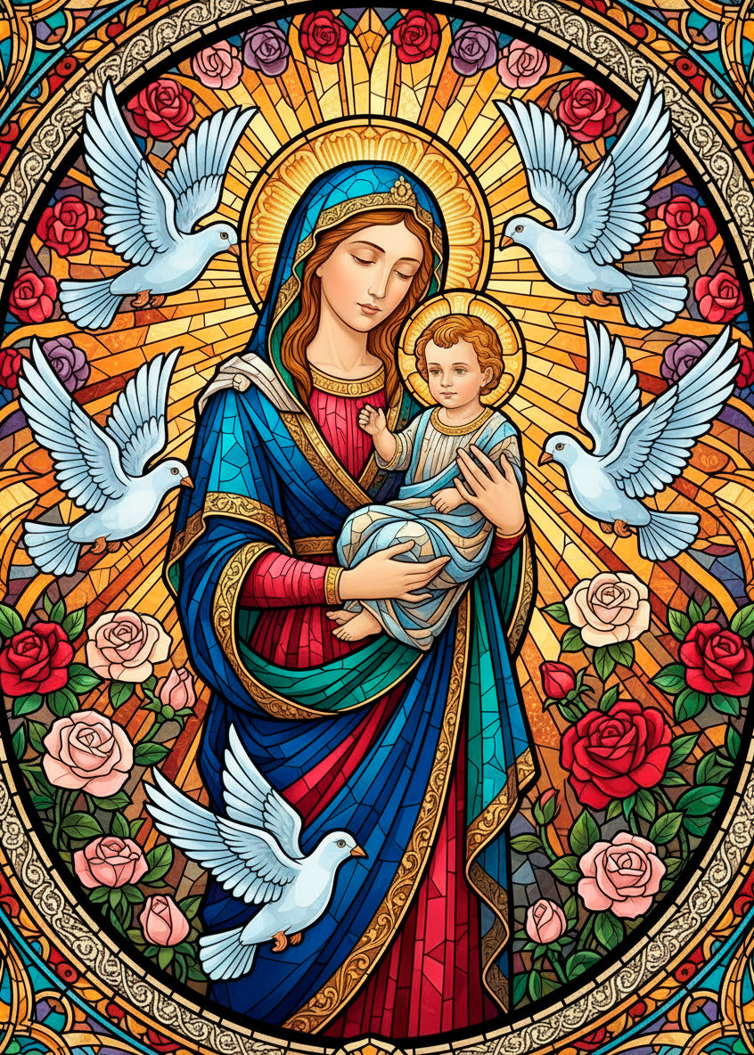 Diamond painting Maria, kind en duiven glas in lood | Exclusief bij Painting Diamonds© (kopie)