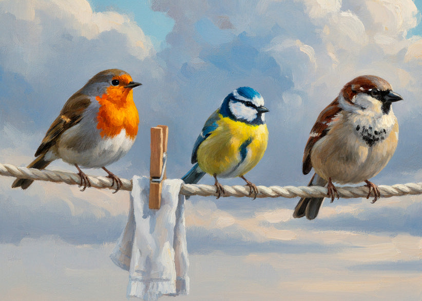 Diamond painting schilderij vogeltjes waslijn | Exclusief bij Painting Diamonds